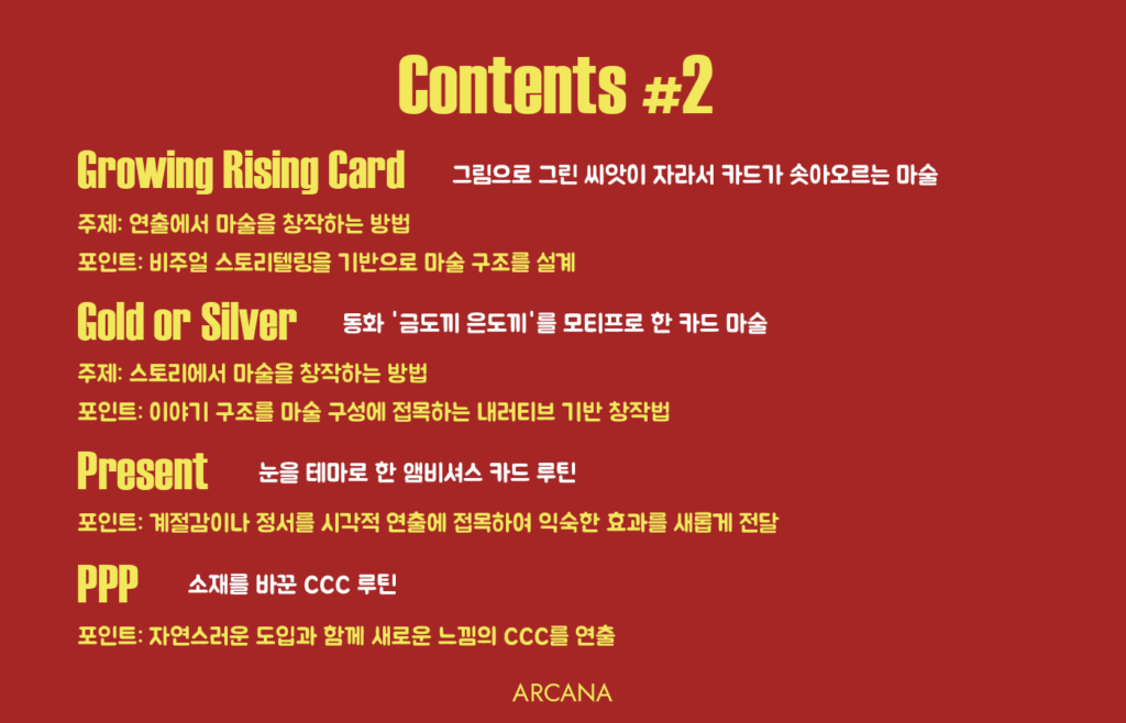 일본에서 출시했던 콘텐츠, 새로운 마술 등을 렉처를 통해 여러분과 공유합니다.