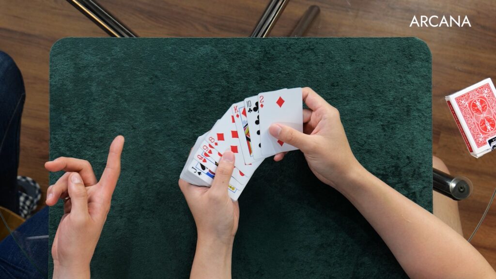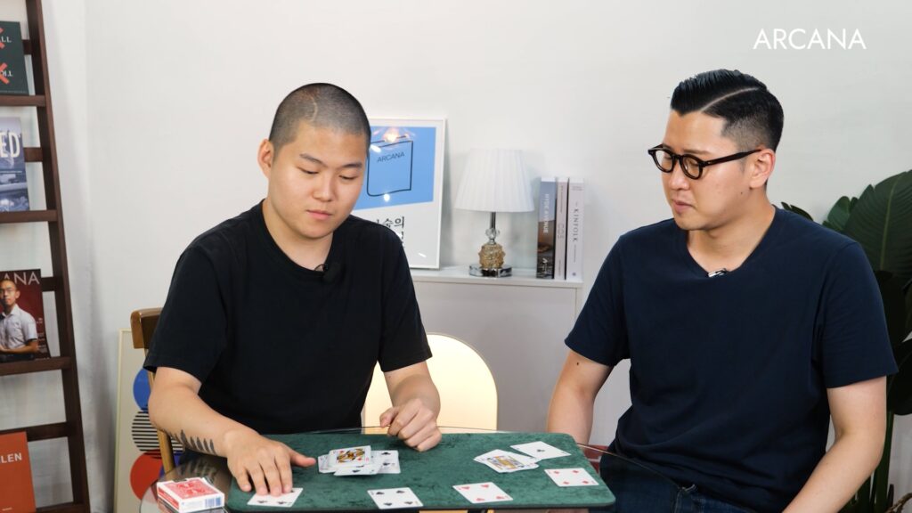 관객이 마술사의 카드를 찾아냅니다.